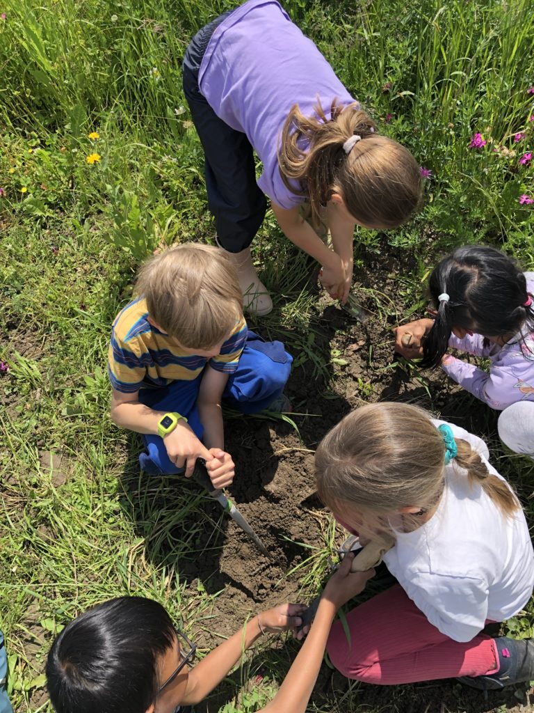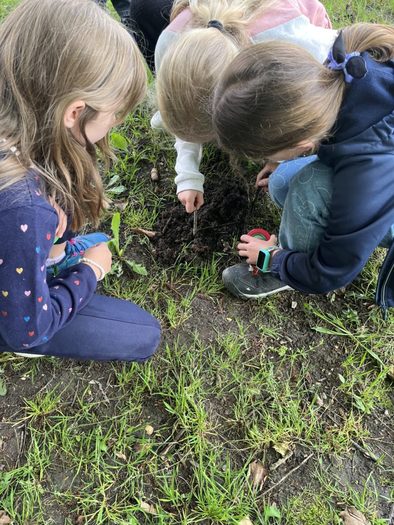 On creuse pour observer les différentes textures sur sol, on touche.