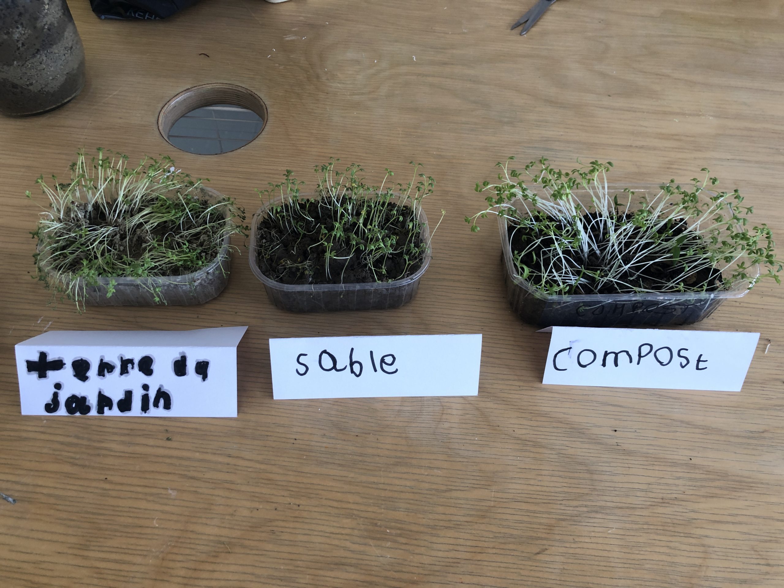 On sème du cresson dans différents sol et on observe comment il pousse.