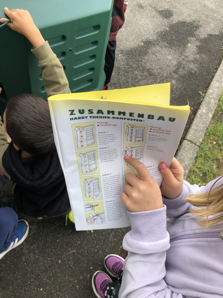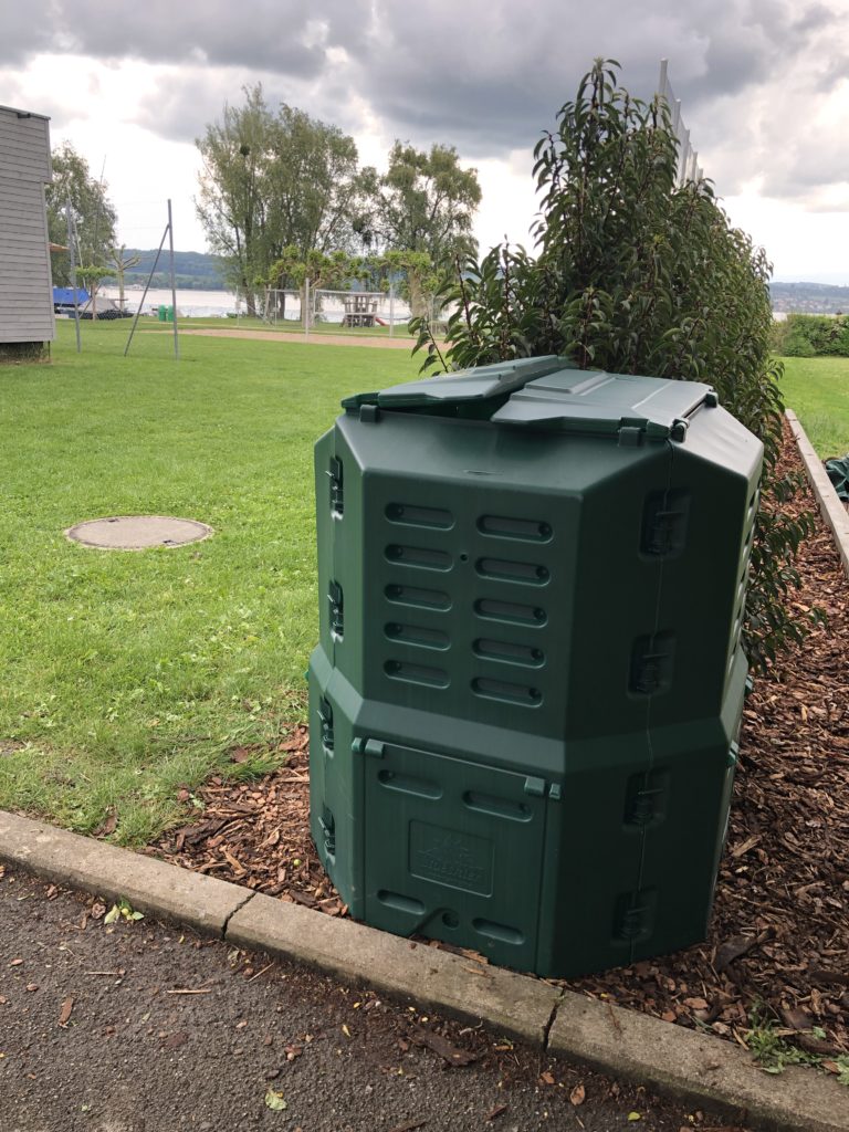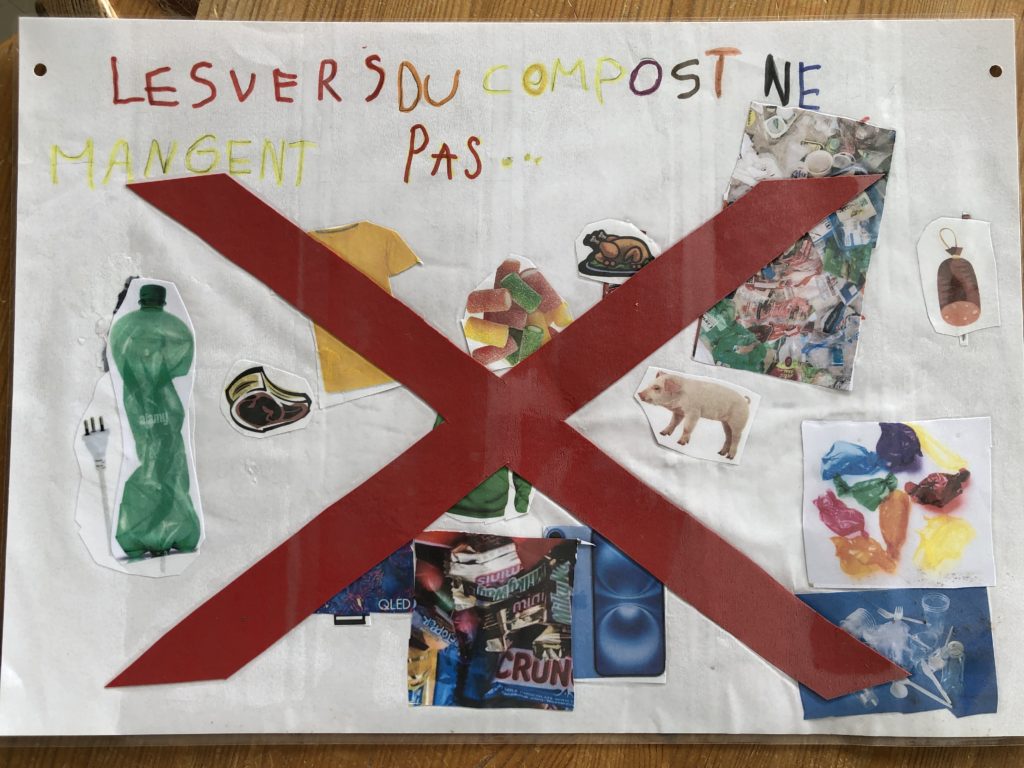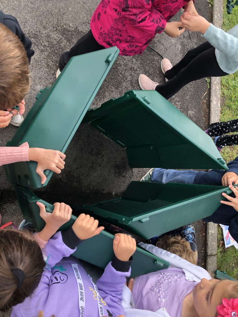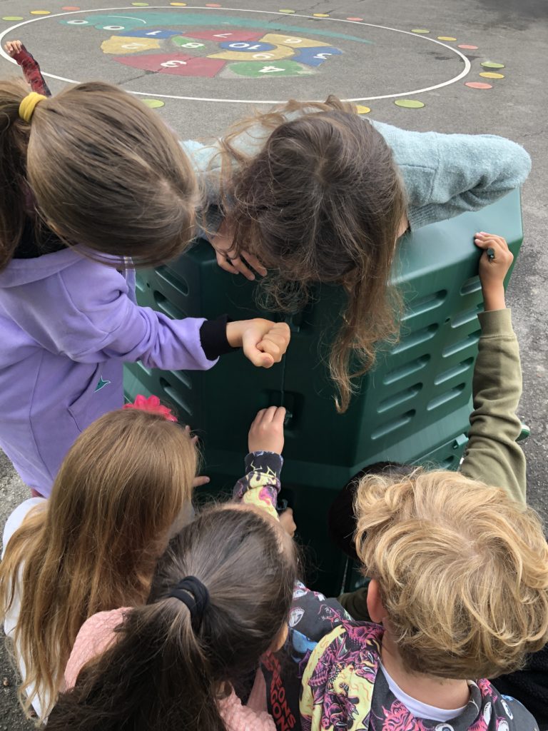 On installe un compost dans la cour de récréation.