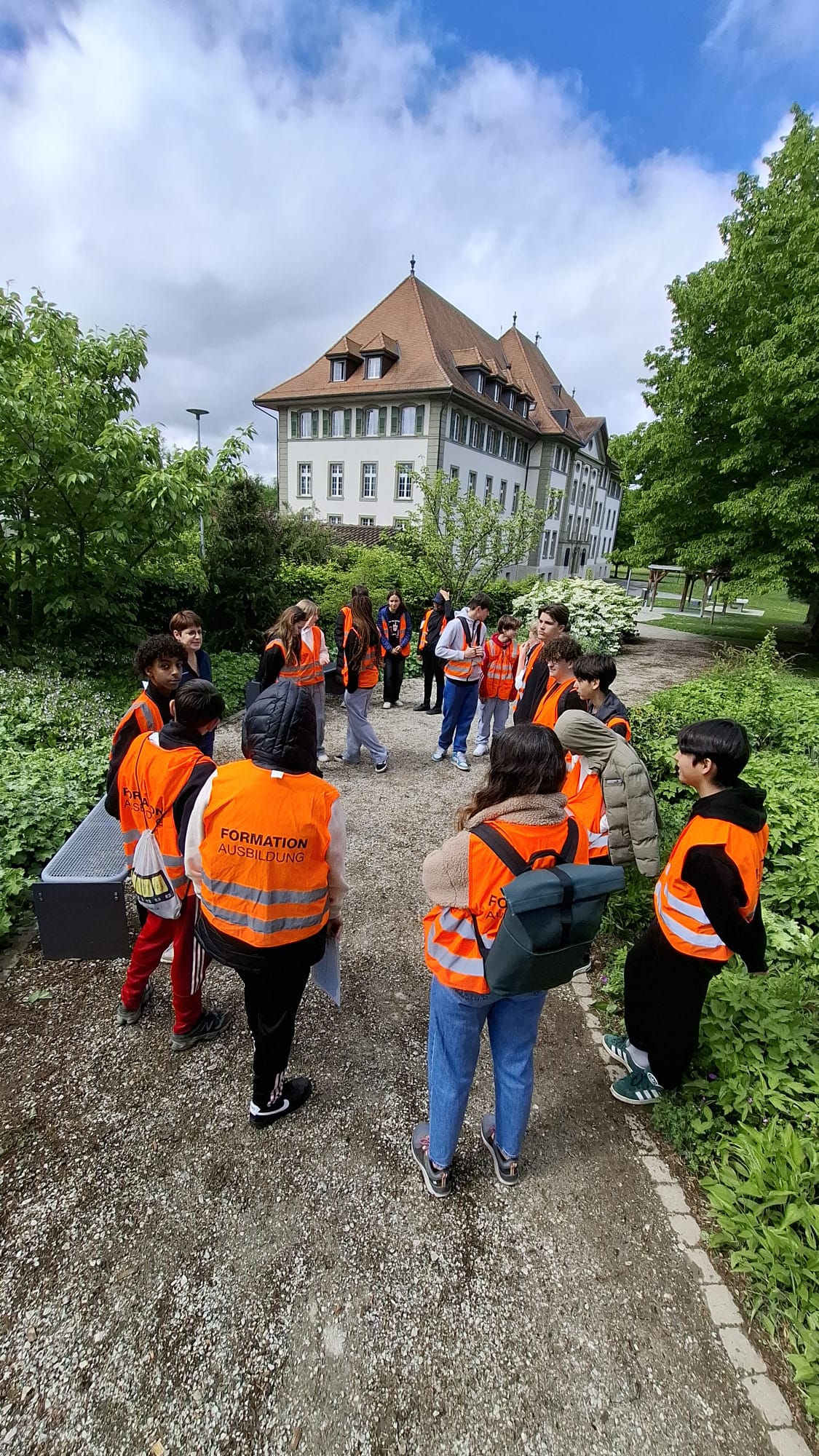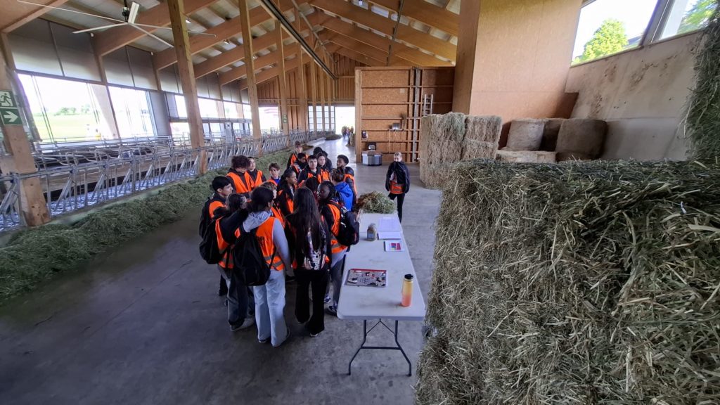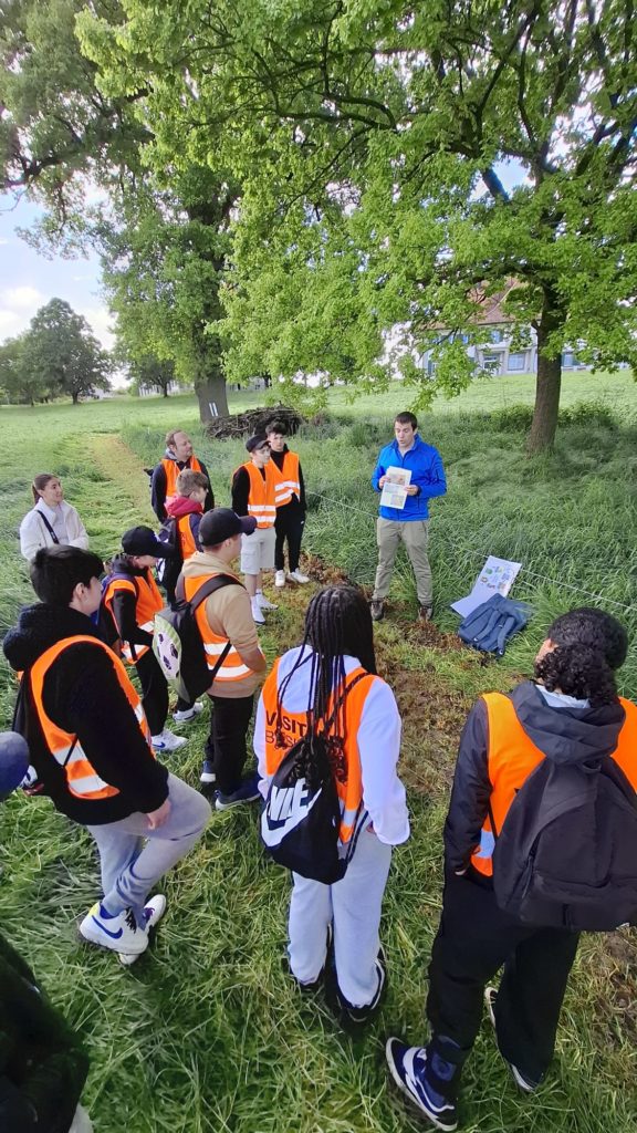 Une fois n’est pas coutume, tous les élèves de 9H accompagnés de leur titulaire se sont mis au vert. Ils ont pris la direction de l’institut fédéral agricole de Grangeneuve en bus TPF. Un peu à la manière de détectives en gilet de sécurité orange fluo, les classes ont mené l’enquête sur le site pour découvrir et expérimenter concrètement comment le concept de biodiversité était appliqué à Grangeneuve. A chaque poste, des experts fédéraux animaient des mini ateliers/conférences. Ils répondaient aux questions des élèves qui s’étaient préalablement préparés. Un système de tournus permettait à chaque classe de visiter 5 postes. En voici quelques-uns : sols et semences, biogaz, sylviculture, arboriculture, cultures, herbages et foins, aménagement en faveur de la biodiversité, élevage, … Une excellente manière de se reconnecter au vivant. Une matinée qui devrait réveiller une plus grande sensibilité à la richesse de la biodiversité.