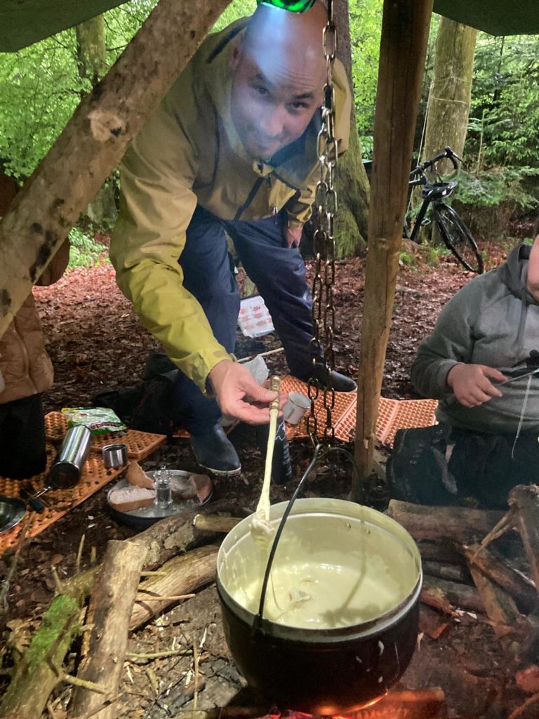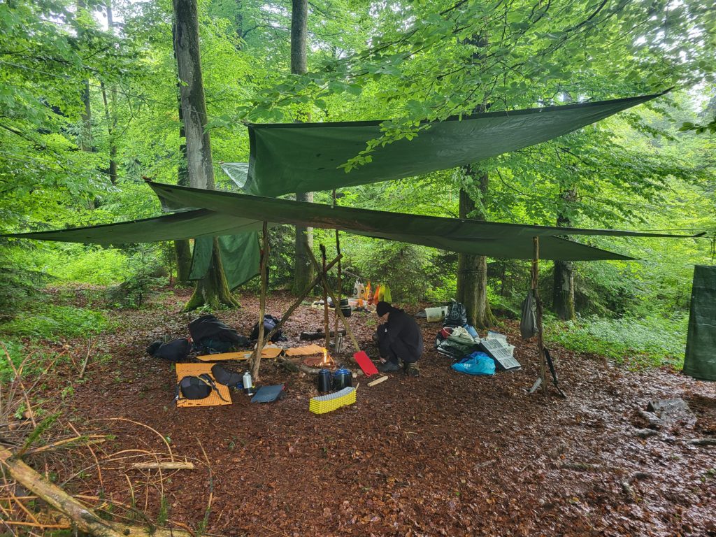 1er jour on devait construire nos habitats, le soir on a mangé des pattes, la nuit tout le monde a mal dormi à part moi et quelqu’un d’autre. Le matin presque tout le monde était parti parce qu’ils étaient trop mouillés, le soir on a mangé une fondue et la nuit une personne est partit du coup on était 3 à dormir dans la même tente, on a tous les 3 bien dormi.