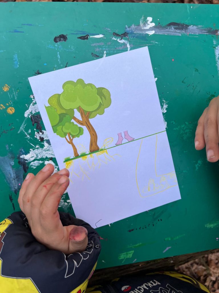 Pour commencer, les enfants ont imaginé et dessiné ce qui se trouve sous la terre. Nous avons recueilli leurs différentes représentations : terre, racine, caillou, ver de terre, taupe, graine, feuille, ou même des trésors, …