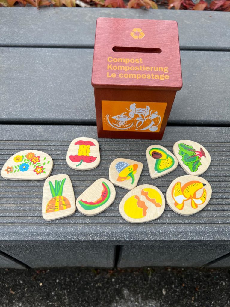 Grâce à notre super concierge, nous avons maintenant un compost à l’orée de la forêt de l’école. Désormais, il ne reste plus qu’à aller « nourrir » le compost avec les restes des fruits et légumes des goûters !