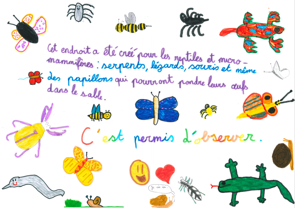 Dans un premier, nous avons observé les zones, préparé les terrains puis mis en place le matériel nécessaire à chaque endroit. Les élèves ont participé en apportant des pierres, du sable, des branches.