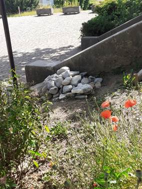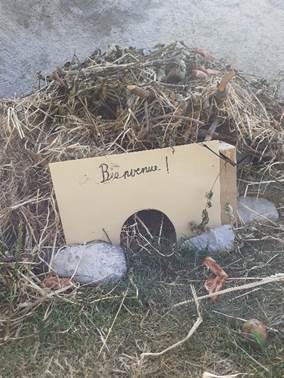 Nous avons mis en place un tas de pierres qui permettra d’accueillir la petite faune (lézard, orvet, papillons…), un abri à hérissons pour leur permettre de passer l’hiver ainsi qu’un tas de branches qui pourra aussi devenir un lieu d’habitation pour la petite faune.