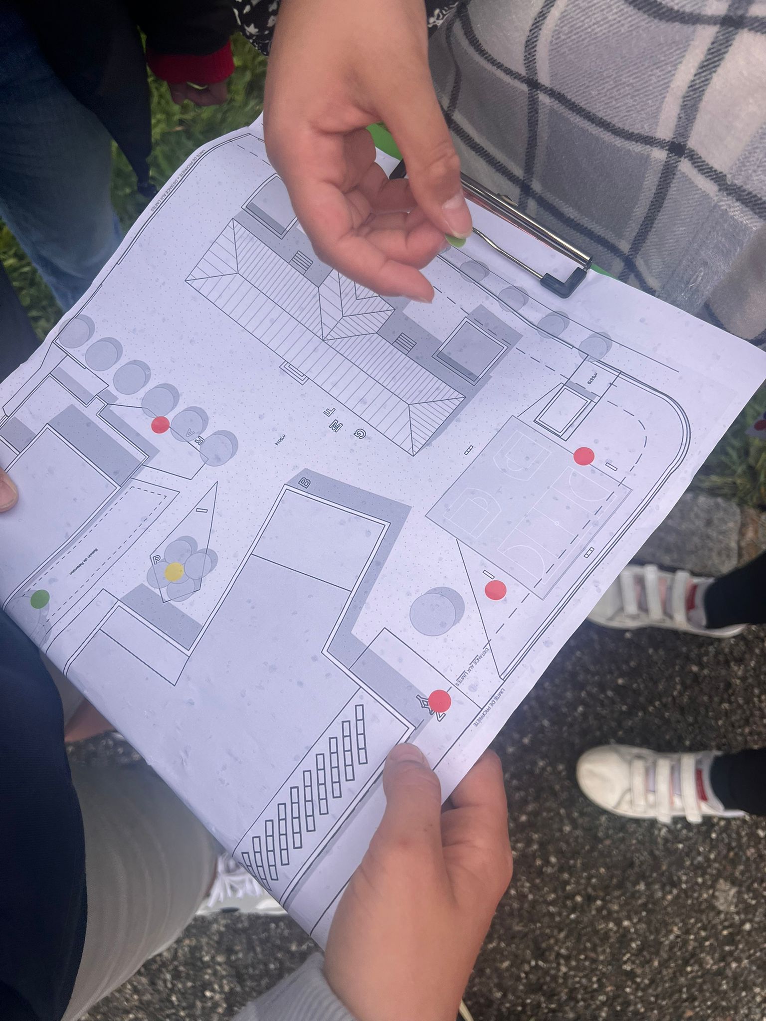 Enfin, les élèves ont pu proposer des pistes d’amélioration. Les plans et les pistes seront transmis à notre nouvelle « commissions de l’énergie » qui réunit des élèves et des acteurs.trices de toute l’école. Les données récoltées serviront de base de travail pour un futur réaménagement de notre cour d’école.