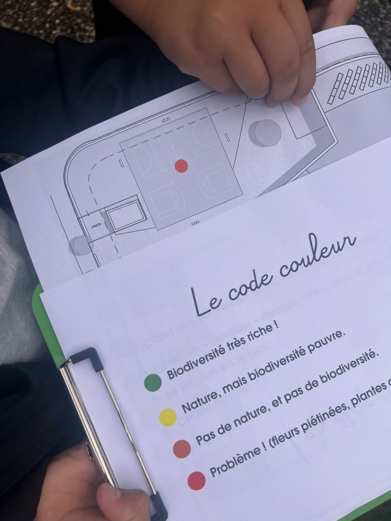 Les élèves des classes 6HB et 8HB de La Tour-de-Trême ont cartographié ce matin la présence de biodiversité dans la cour d’école. Tout d’abord, les plus grand.e.s ont expliqué aux plus jeunes le concept de « biodiversité », un joli défi! Puis, en parcourant toute la cour, de petits groupes ont pu apprendre à se repérer, choisir un point à analyser, observer et donner leur ressenti sur la biodiversité perçue autour d’eux.elles.