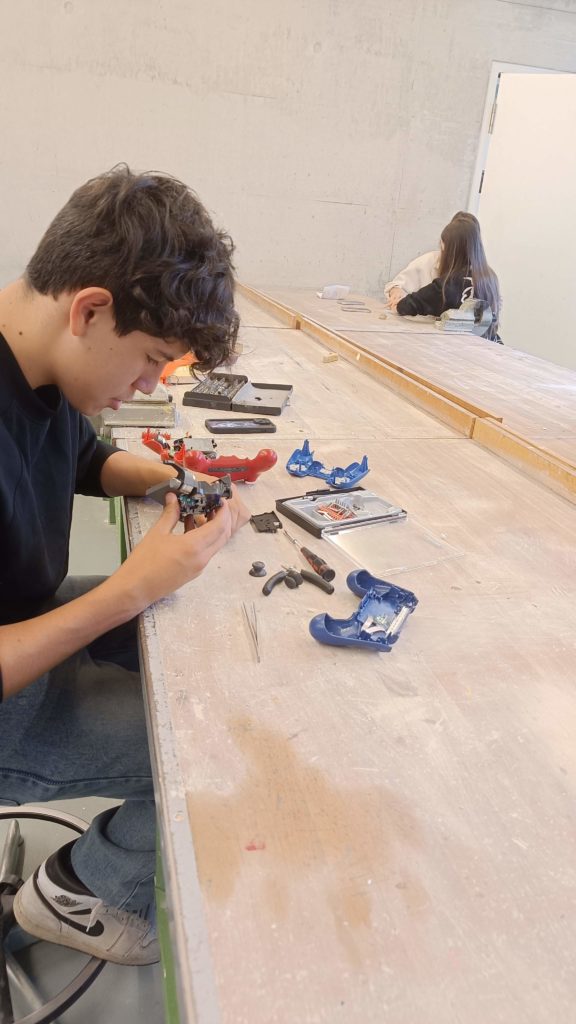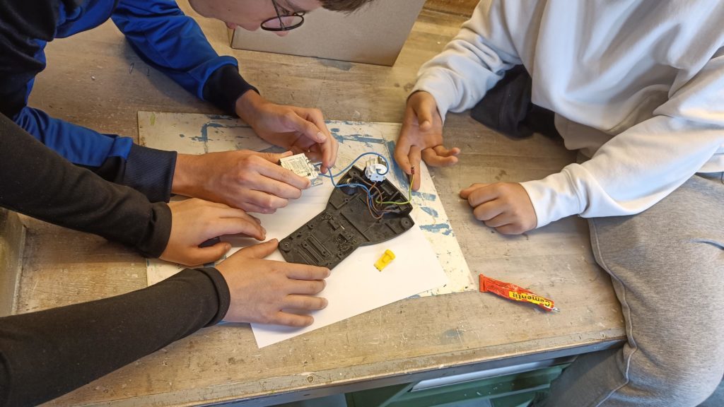 Durant cette action, nous avons retroussé nos manches pour redonner une seconde vie à plusieurs objets : le cadre d’un miroir cassé, une manette de PlayStation 4 défectueuse, un pied de microscope en morceaux ainsi que quelques chaises abîmées. À travers ce projet, les élèves ont non seulement mis en pratique des compétences techniques simples, mais ont aussi réfléchi à l’impact écologique de nos habitudes de consommation.