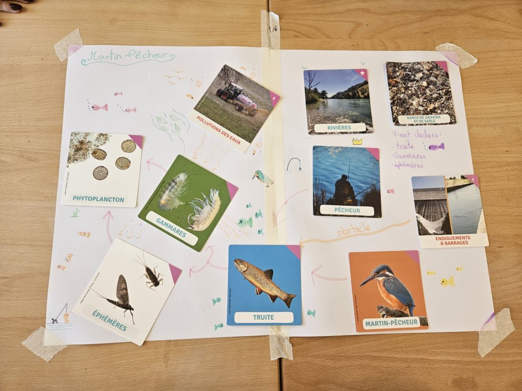 Cette activité faisait écho à notre sortie en début d’année à la rivière, où les élèves avaient observé des invertébrés aquatiques et identifié les signes de pollution dans l’eau. Ce moment sur le terrain leur avait permis de développer les notions de chaîne alimentaire, d’équilibre naturel et d’interdépendance entre les espèces.